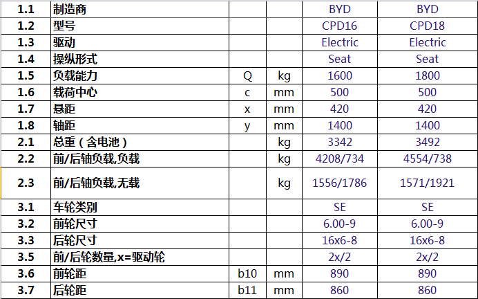 2、CPD16/18四支點(diǎn)平衡重叉車技術(shù)參數(shù)表